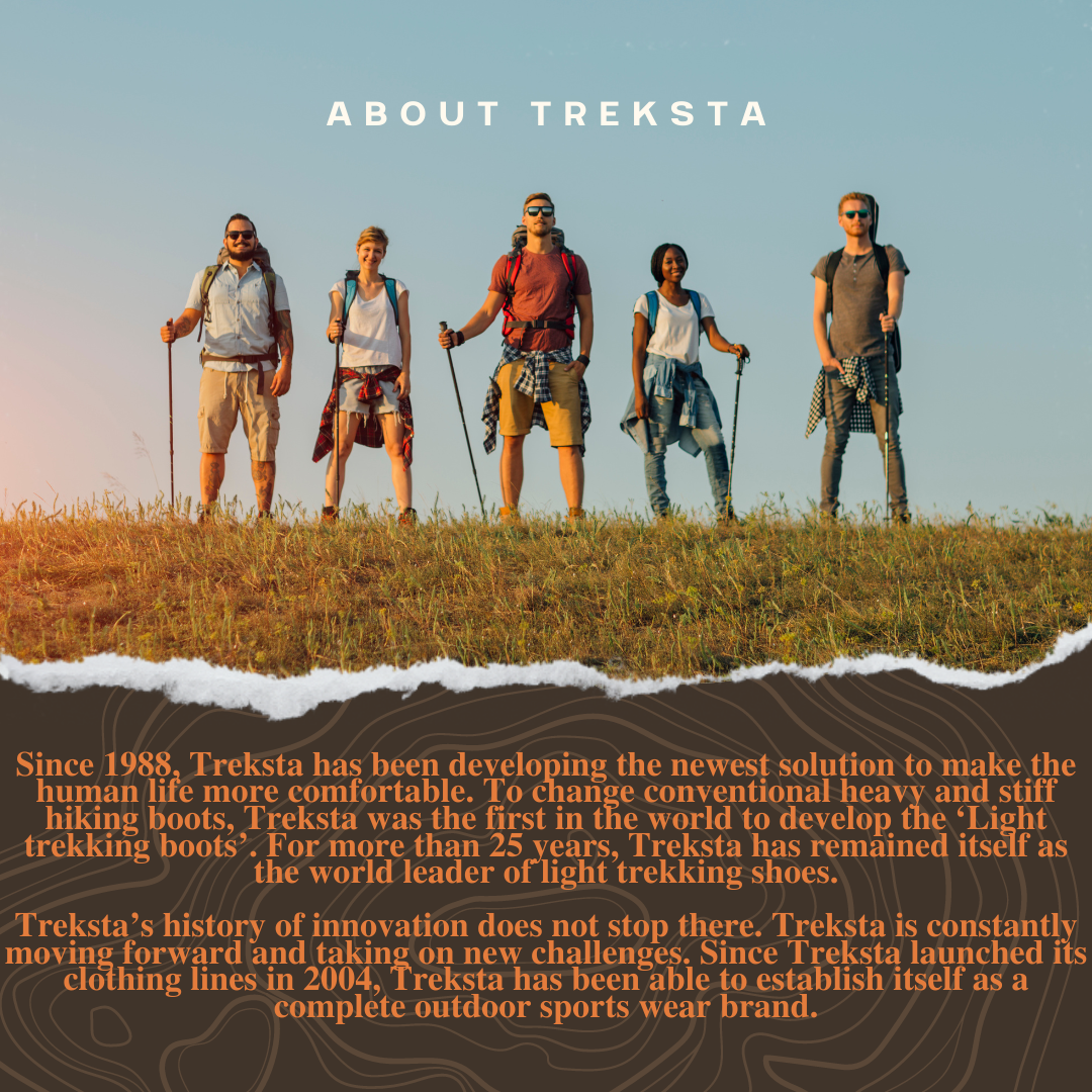Since 1988, Treksta has been developing the newest solution to make the human life more comfortable. To change conventional heavy and stiff hiking boots, Treksta was the first in the world to develop the ‘Light trekking boots’. For more than 25 years, Treksta has remained itself as the world leader of light trekking shoes. Treksta’s history of innovation does not stop there. Treksta is constantly moving forward and taking on new challenges